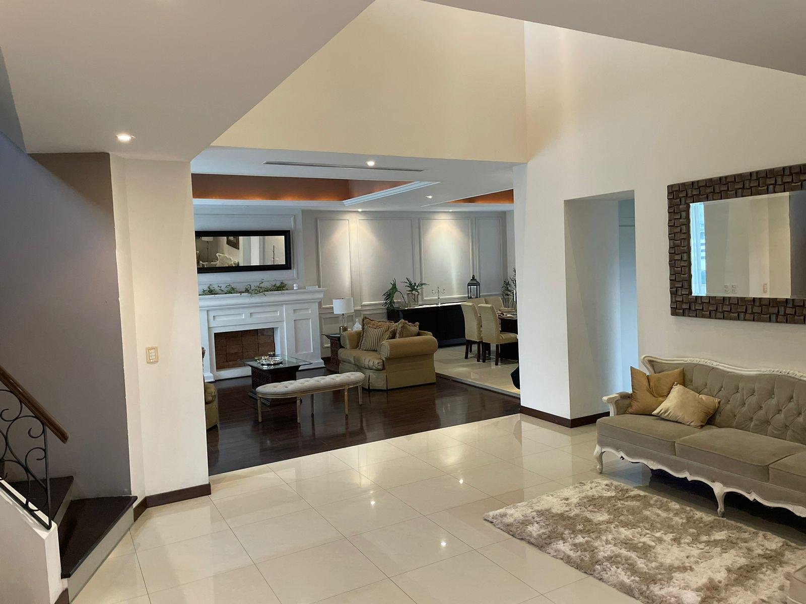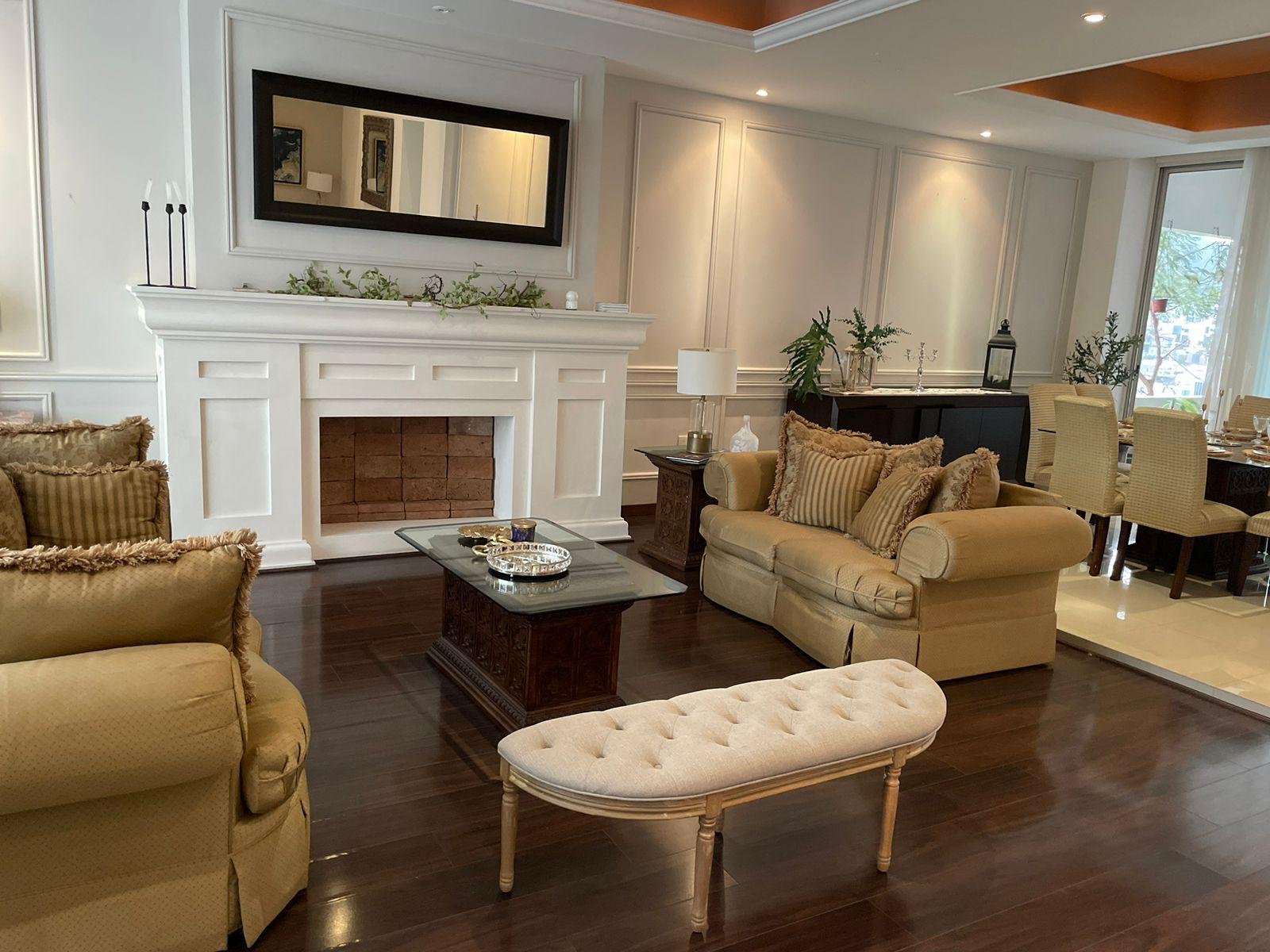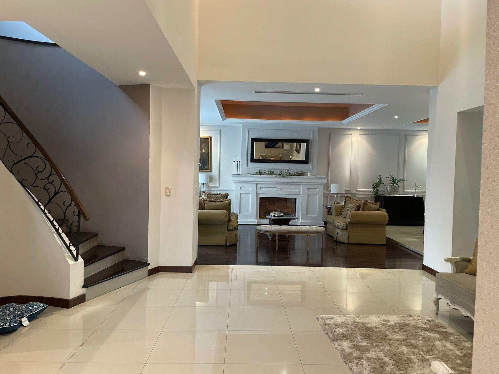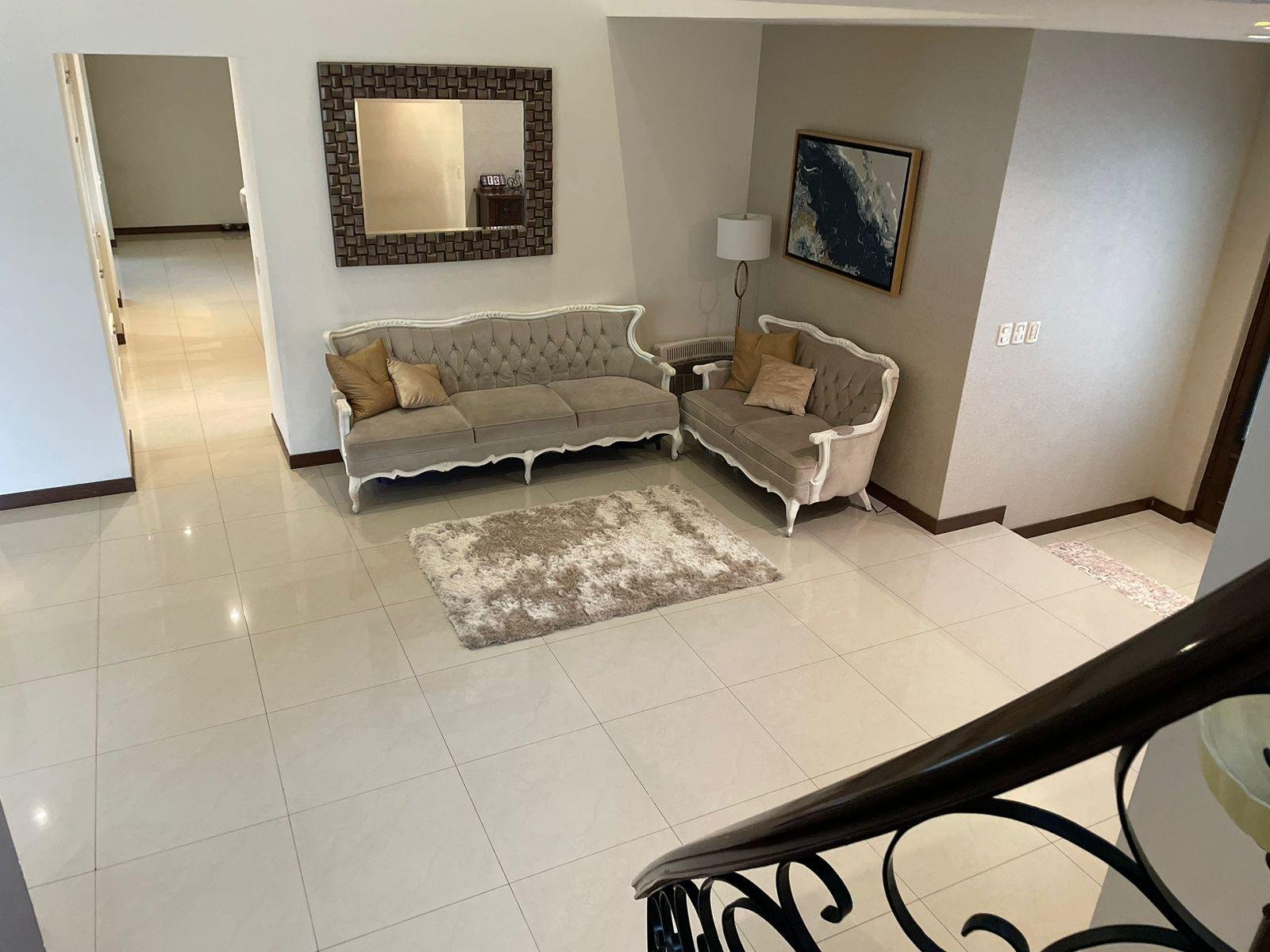 Excelente casa en sector privado con vigilancia 24/7, esta propiedad cuenta con dos frentes, dos cocheras una de ellas con espacio para 6 autos, la otra para uno, cada una con portón eléctrico. A nivel de cochera,cuenta con patio, terraza, cuarto de servicio con baño , lavandería y cuarto independiente para vistas con baño completo. Primer nivel: Pórtico al entrar, recibidor de doble altura, medio baño de visitas, sala y comedor con terraza, cocina equipada con isla y espacio para antecomedor. Segundo nivel: Estancia de T.V., tres recamaras , la principal con espacio para oficina y lavandería, las tres con baño y vestidor cada una. Cuenta con una terraza panorámica con vista de 360 espectacular ! Ademas cuenta con un departamento equipado y amueblado de 130 mts, con entrada independiente, con una recamara, 1.5 baños, sala comedor y cochera para un auto. La casa se entrega llave en mano ! totalmente equipada : Cuenta con finos acabados, paneles solares, cortinas, mini splits en todas las áreas, boiler, cocina con isla de granito, muebles de baños con cubierta de granito y canceles de cristal templado.
