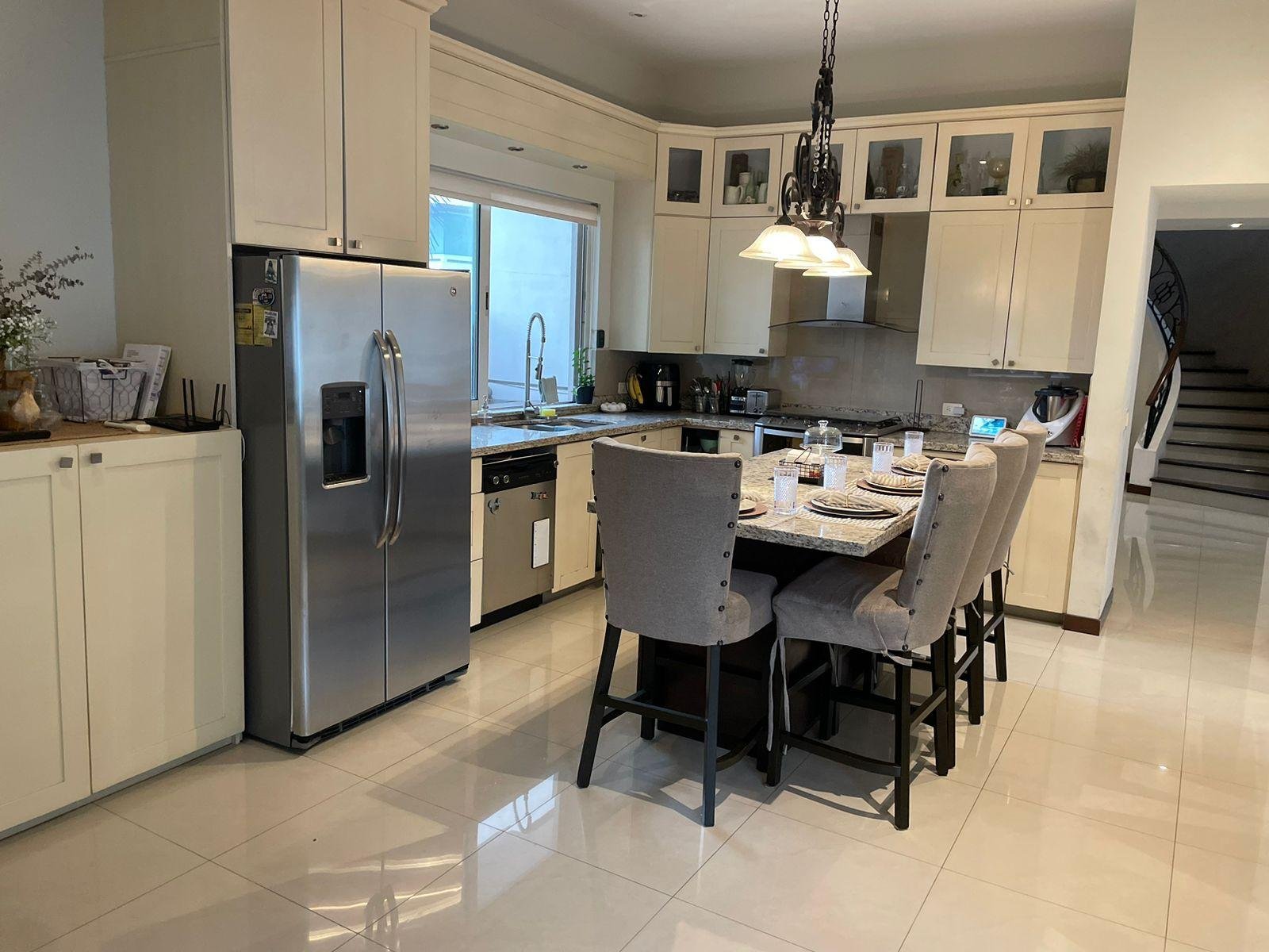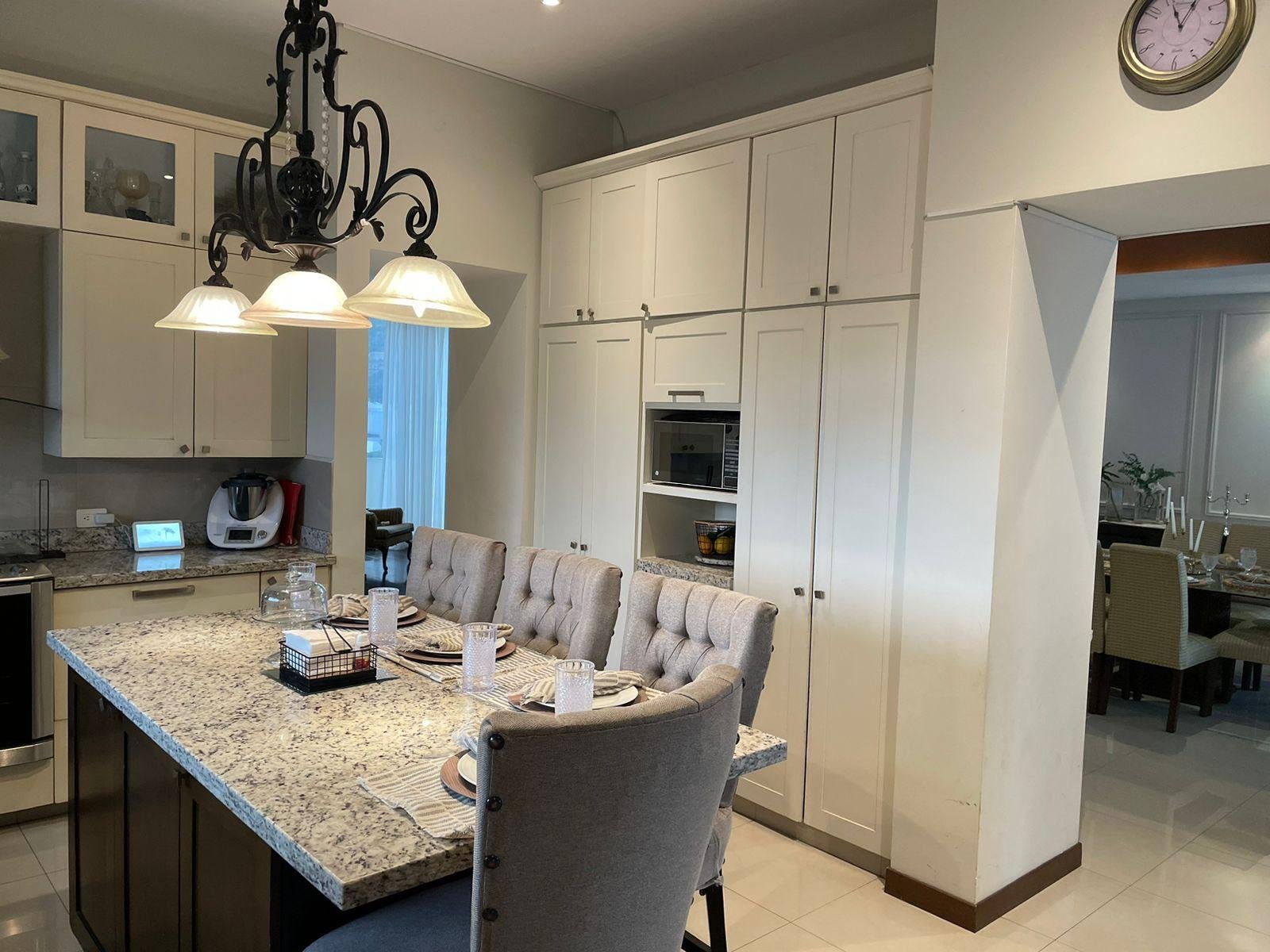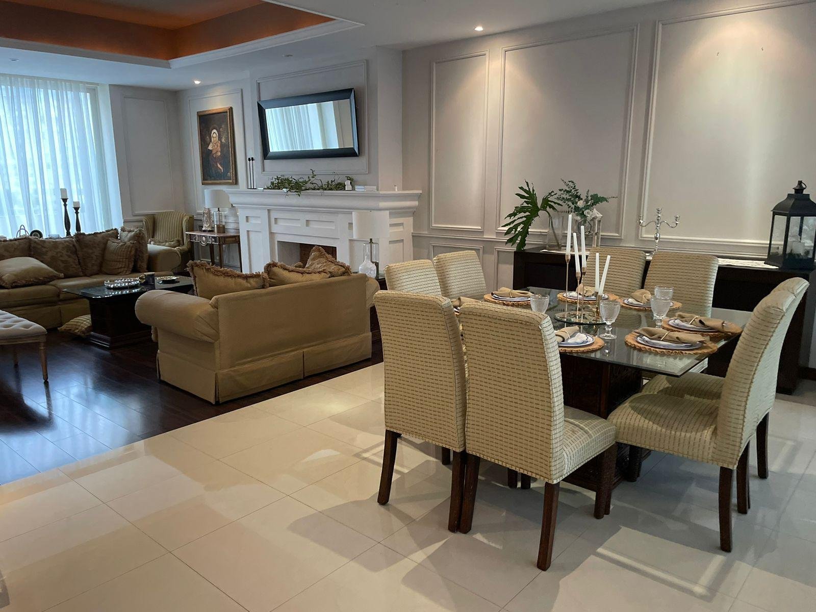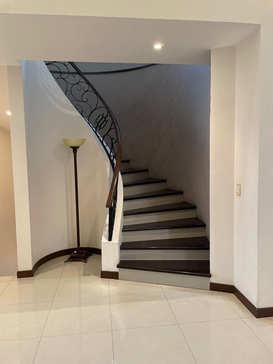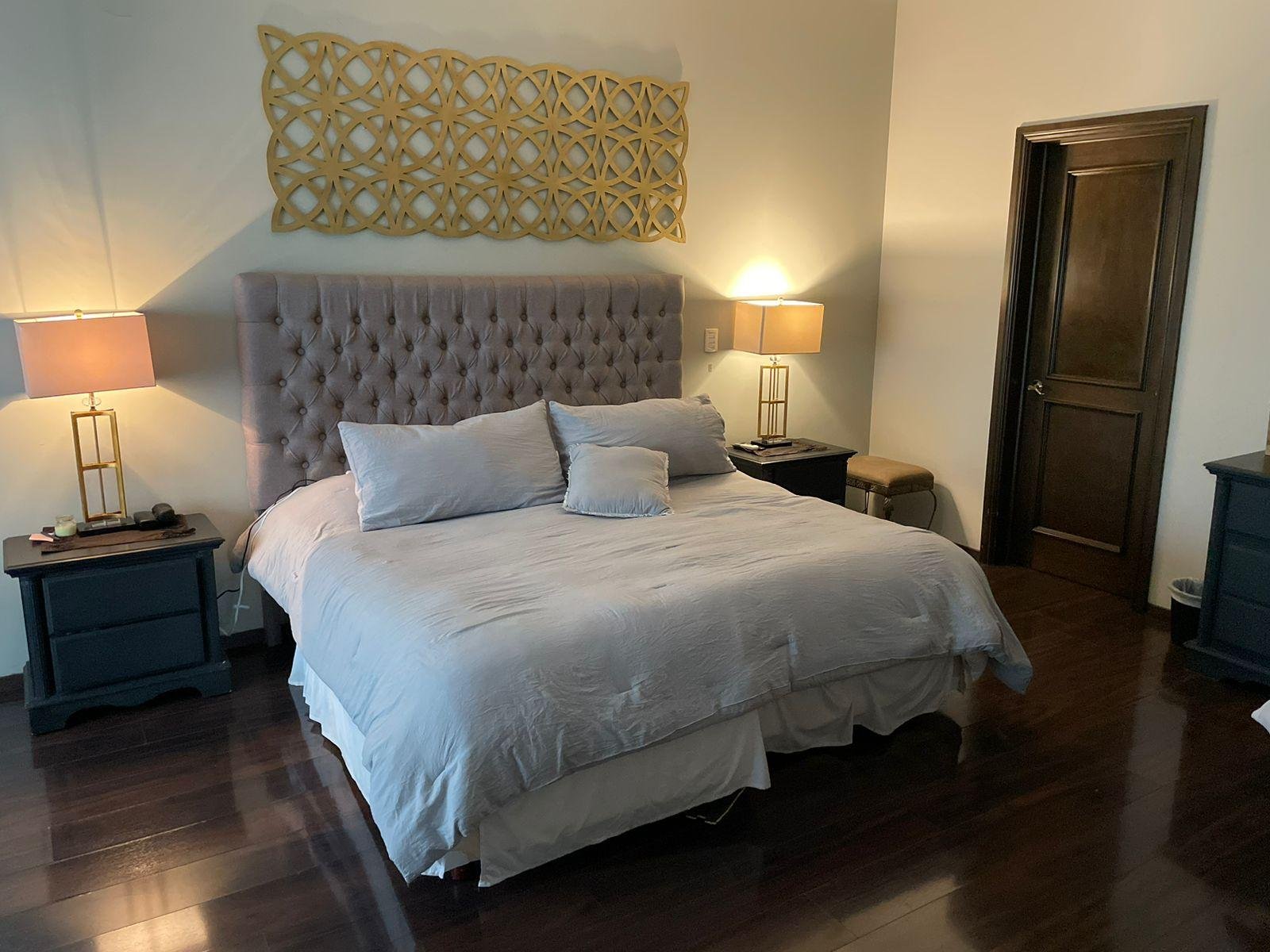 Excelente casa en sector privado con vigilancia 24/7, esta propiedad cuenta con dos frentes, dos cocheras una de ellas con espacio para 6 autos, la otra para uno, cada una con portón eléctrico. A nivel de cochera,cuenta con patio, terraza, cuarto de servicio con baño , lavandería y cuarto independiente para vistas con baño completo. Primer nivel: Pórtico al entrar, recibidor de doble altura, medio baño de visitas, sala y comedor con terraza, cocina equipada con isla y espacio para antecomedor. Segundo nivel: Estancia de T.V., tres recamaras , la principal con espacio para oficina y lavandería, las tres con baño y vestidor cada una. Cuenta con una terraza panorámica con vista de 360 espectacular ! Ademas cuenta con un departamento equipado y amueblado de 130 mts, con entrada independiente, con una recamara, 1.5 baños, sala comedor y cochera para un auto. La casa se entrega llave en mano ! totalmente equipada : Cuenta con finos acabados, paneles solares, cortinas, mini splits en todas las áreas, boiler, cocina con isla de granito, muebles de baños con cubierta de granito y canceles de cristal templado.